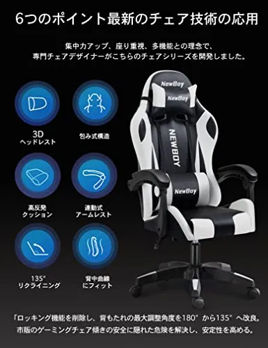 NewBoy ゲーミングチェア gaming chair オフィスチェア オットマン オフィス ゲーム用 リクライニング デスク/パソコンチェア 疲れない 椅子 テレワーク (黒と白)/