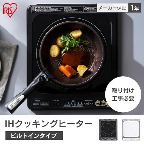 ◆アイリスオーヤマ IHコンロ ビルトインタイプ 1口 100V 1400W 6段階加熱 タイマー付き ガラスプレート 取付工事必要 IHC-B113-W ホワイト