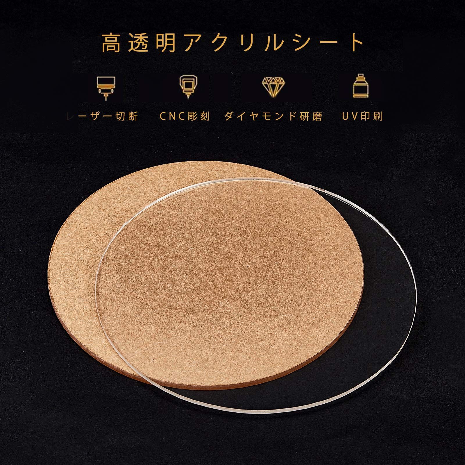 パッケージ包装:5枚丸アクリル板、サイズ:直径約126mm、厚さ3mm。