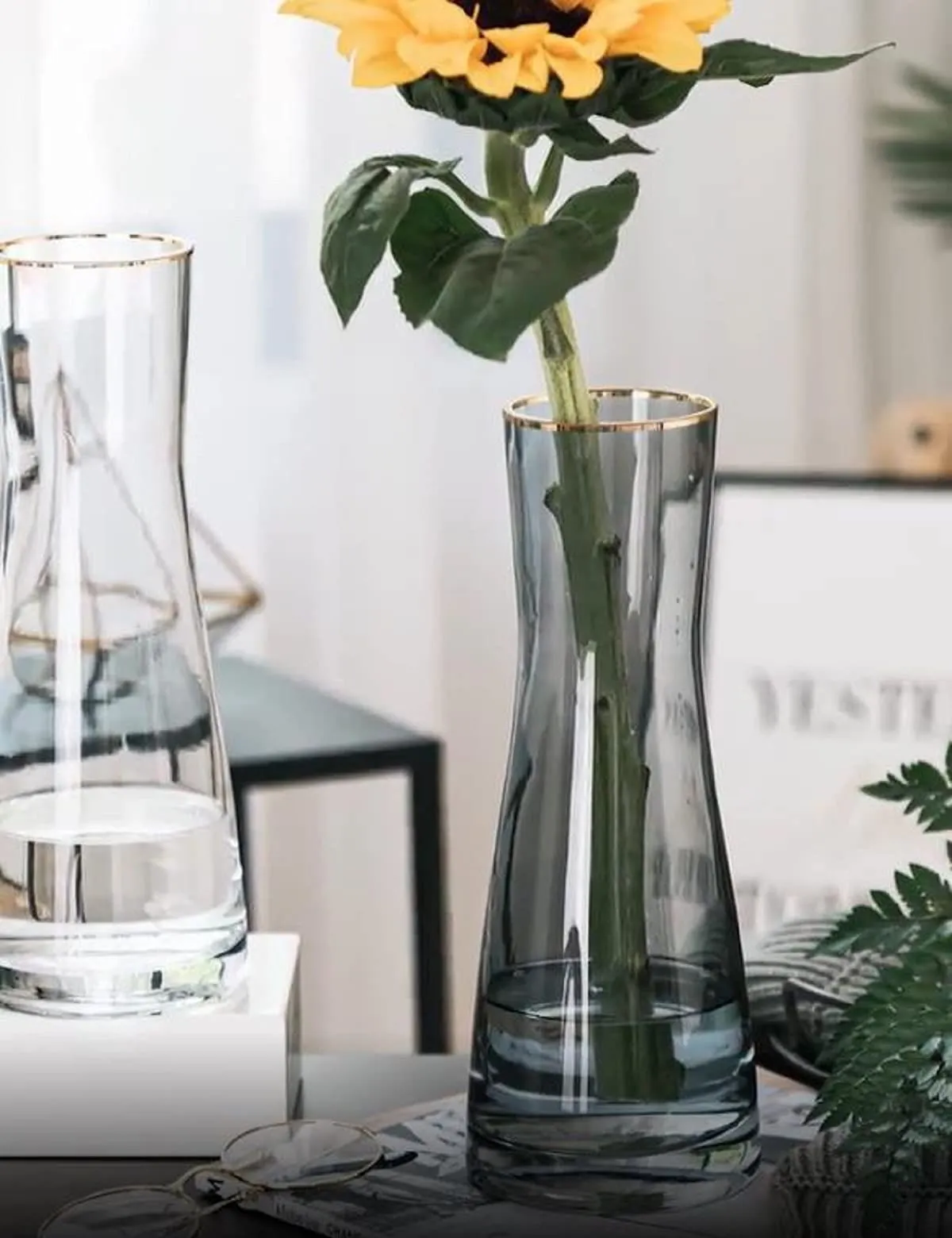 花瓶 ガラス グレイ花器 一輪挿し フラワーベース ガラスベース ガラスボトル アレンジ インテリア 水栽培 生け花 造花 おしゃれ シンプル インテリア