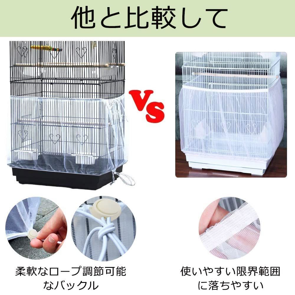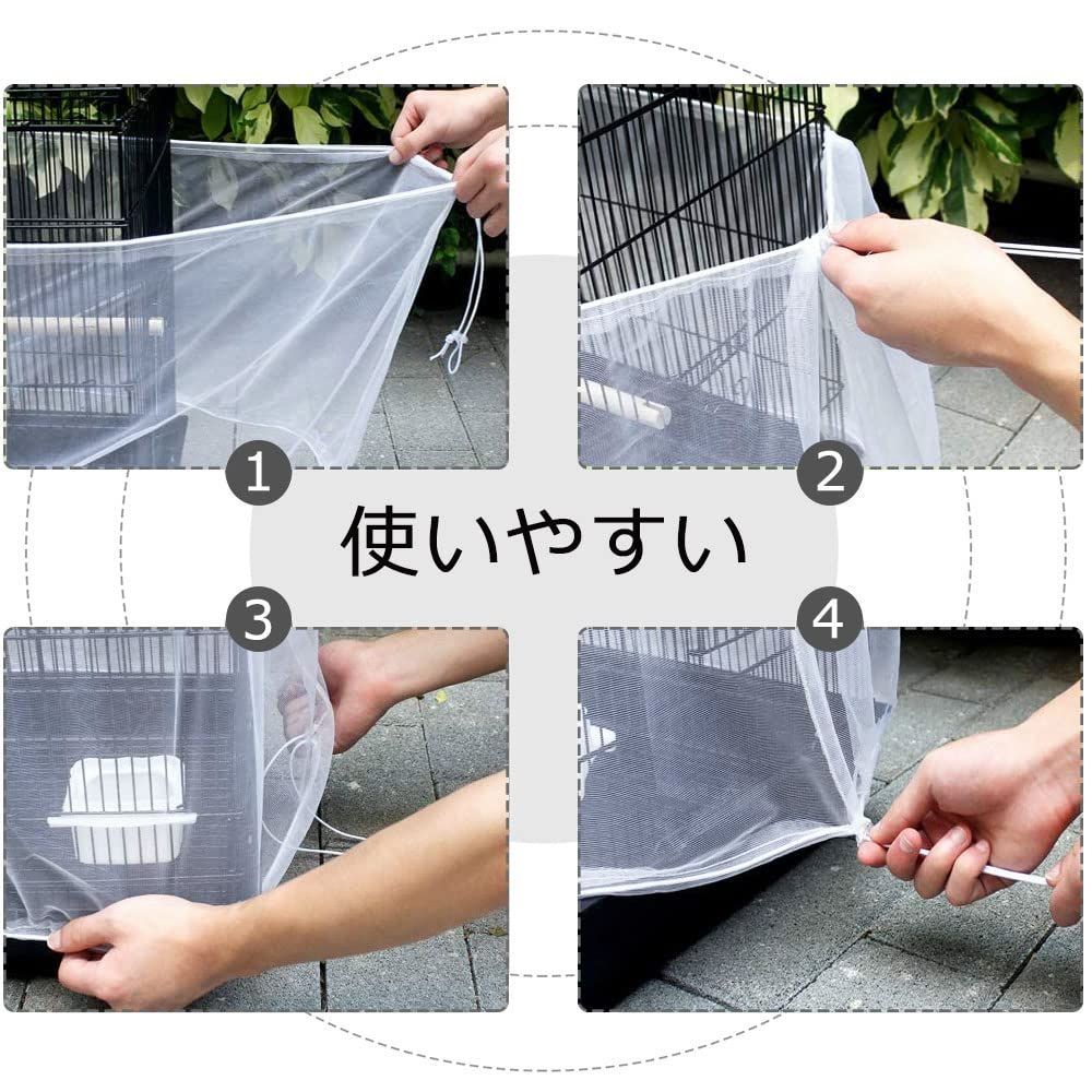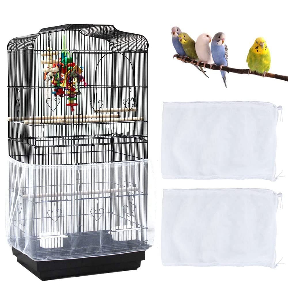 ZADAFINA 鳥かごカバー 2枚セット 防塵・通気性メッシュ 伸縮調整可能 オウム/小鳥用 餌の飛散防止 洗える ホワイト (サイズM) 39-78インチ対応