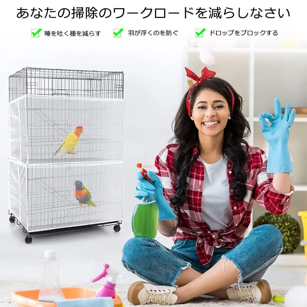 【掃除が楽になる防塵設計】ケージにぴったりフィットし、羽や餌の飛び散りを防止。床を清潔に保ち、掃除の手間を大幅に軽減します。