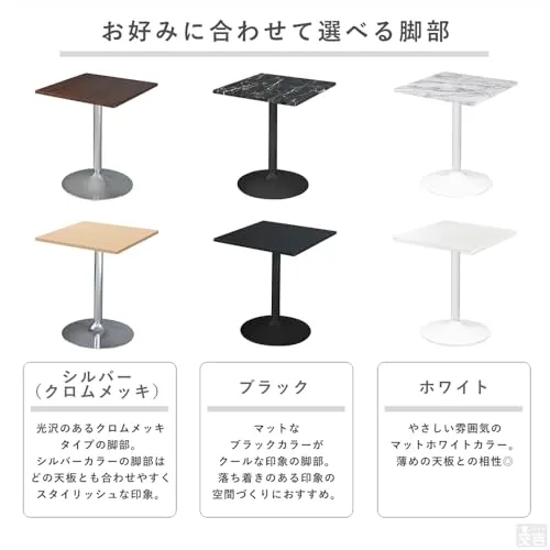 落ち着きのある木目調デザインから高級感漂う大理石調などお部屋に合わせやすい豊富なカラー展開。 60cmの天板はカフェを楽しんだりノートパソコンを置いて、ちょっとしたお仕事をするのに適したサイズ感となっております。 お手入れや組立ても簡単なダイニングテーブルです。天板表面は汚れや水に強いPVCシートを使用している為、サッと拭いて簡単にお手入れできます。