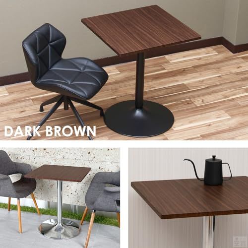 カフェテーブル 600×600×H710 スチール脚 黒脚 木目(ダークブラウン) 幅60cm ダイニングテーブル 机/