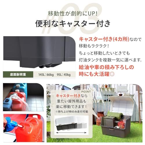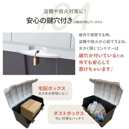 天馬(Tenma) 大容量の屋外収納ボックス 日本製 重い物でも取り出しやすい大きく開くコンテナ ベランダ収納 ホームボックス 灯油タンクにピッタリな収納ストッカー 鍵穴付きで防犯対策 収納ケース 宅配ボックス ゴミ箱 プラスチック 大きく開くコンテナ140/