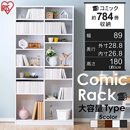 アイリスオーヤマ 本棚 幅89×奥行28.8×高さ180.0? 8段 棚板可動 オープンラック 大容量 組立品 ホワイト CORK-1890/