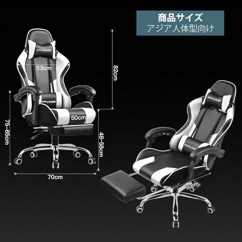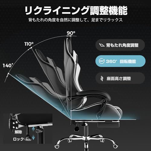 GTPlayer ゲーミングチェア オットマン付き デスクチェア オフィスチェア ゲームチェア 145°リクライニング ハイバック ヘッドレスト ひじ掛け ランバーサポート 蒸れない座面 PUレザー 気孔付き皮革 テレワーク 椅子 パソコンチェア イス ga/