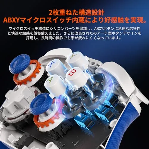 【ABXYボタンとトリガーボタンによる極上の操作体験】: BLITZ2 コントローラーのABXYボタンには、精密なマイクロスイッチが組み込まれており、指先のわずかな動きにも即座に反応します。これにより、素早い入力が求められるゲームシーンでも、遅延のない快適な操作が可能です。さらに、二重層構造により、長時間のプレイでも疲れにくい柔らかな押し心地を実現しています。また、微動肩ボタンには、特許取得済みの「Xレバー」構造を採用し、トリガーのどの部分を押しても均一な操作感が得られます。スプリングアームマイクロスイッチとの組み合わせにより、精密でありながら力を入れずに操作できるため、FPSやアクションゲームなど、スピードと正確さが求められる場面で大いに役立ちます。これらの設計により、ゲームプレイの質が向上し、プレイヤーにとって一層の没入感と満足感を提供します。