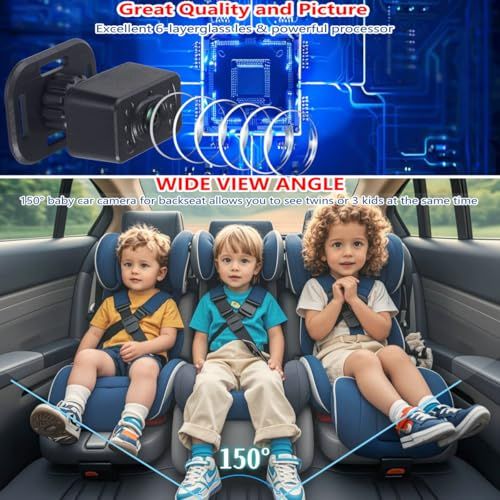 【広い視野角に設計された】赤ちゃん用の後部座席カメラは150度の金色の視野角で、狭すぎず広すぎず、曲がったり歪んだりしません。 このベビー用カーミラーは、2人または3人の子供を見ることができ、素敵な赤ちゃんを常に目の当たりにしながら、常に健康を確保します。