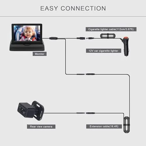 【簡単なセットアップ】JUNHAOZのベビー後部座席用カーシートカメラは、シンプルで簡単なセットアップが特徴で、手間をかけずに素早く取り付けることができ、数分で準備が整います。カーシートカメラをヘッドレストにストラップで固定し、カーベビーモニターにケーブルを配線し、シガーライターに差し込むか、USB電源コードを使用して給電するだけです。 注:パッケージにはUSBケーブルは含まれていません。必要な場合はUSBケーブルをお買い求めください。