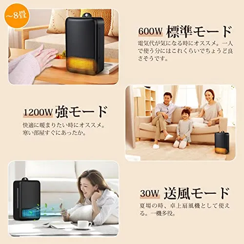 【2秒即暖!3段階温度調節で、効率よく節電】当社のセラミックフヒーター、わずか2秒で瞬時に温風をお届けする即速加?を実現。600Wと1200Wの2段階の消費電力に加え、お好みの温度に合わせて選べる三段温度調節機能を搭載。省電力でさっと暖めたい時も、パワフルな暖房でじっくりと空間を温めたい時も、シチュエーションにぴったりの暖かさをお選びいただけます。効率的な heating で、寒い季節も快適な空間をすばやくお届けします。