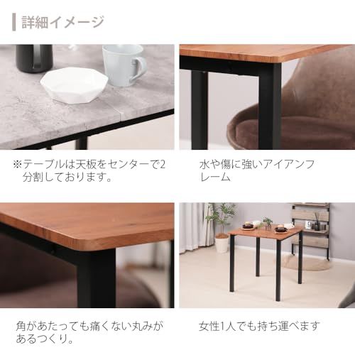 【脚部】スチール(粉体塗装)(※床の傷を防止するプラスチックキャップが付属 しています。) カラー:ナチュラル 梱包サイズ・重量:(約)75x37x10cm (約)11kg(1梱包) 耐荷重:(約)40kg ※テーブルは天板をセンターで2分割しております。 お客様組み立て品(日本語取扱説明書・必要工具:六角レンチ・付属) ※テーブルはアイロン台として使用することはできません。 天板が素材が高熱により変形・変色する恐れがあります。