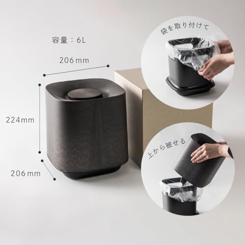 ONOM ゴミ箱 6L 取り換え簡単 袋を隠せる フタなし 日本製 持ち運び簡単 おしゃれ かっこいい かわいい キッチン リビング に 小さい 分別 複数使い スクエア マーブル ライトグレー 塵箱 お洒落 ダストボックス インテリア に 馴染む 一人暮ら/