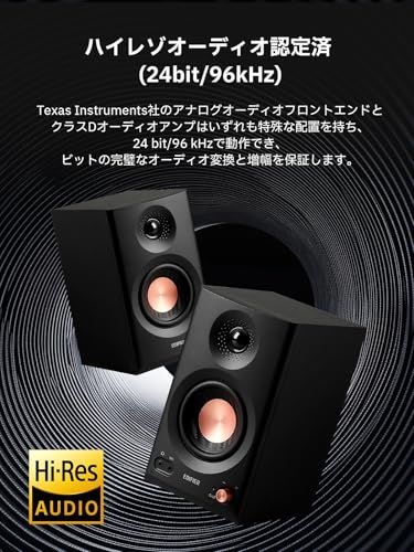 「VGP2025受賞」Edifier MR3 スタジオモニタースピーカー「2024年新モデル」36W Bluetooth 5.4 ルーム補正 ハイレゾ 専用アプリ TRSバランス/RCA/AUX入力 3.5mm/ヘッドホン端子出力 52Hz-40kHz スタ/