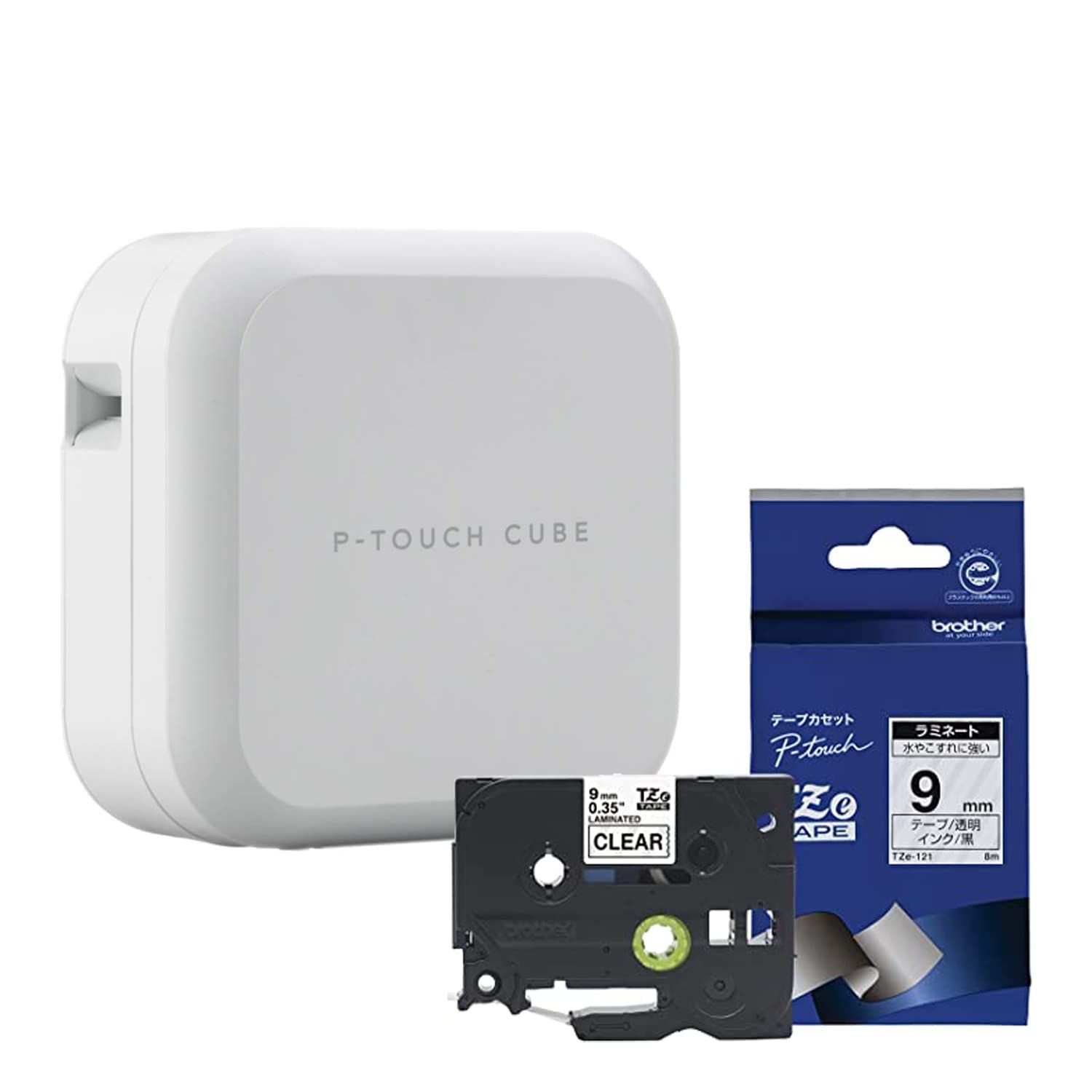 【セット販売】ブラザー ラベルライター ピータッチキューブ PT-P710BT (スマホ対応/3.5mm~24mm幅/TZeテープ) & 【brother純正 】ピータッチ ラミネートテープ (ラベルライター+テープ TZe-121)/