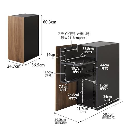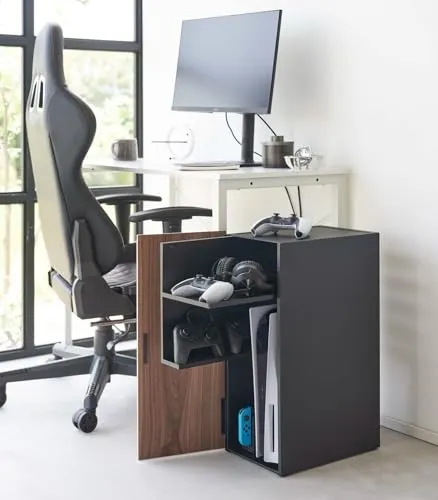 サイズ:約幅/24.7cm x 奥行き/36.5cm x 高さ/60.3cm 特徴: ゲーム機やコントローラーを隠しながら美しく収納できる大容量ラック 奥の物も取り出しやすいスライド式の2段棚。コントローラーやヘッドセットの収納に 大型の据え置き型のゲーム機はラック内右下の広い空間に収納できます 充電しながら収納可能。ケーブル迷子を防ぐケーブルホルダー付き 天板はコントローラーなどの一時置きにも。扉部分のスリットから充電ケーブルを通せます