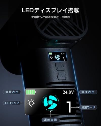 KOJIHOMU ブロワー 洗車 2025新登場 【2400g超強推力・200m/s史上最強風速】 エアダスター 24000mAh BMS高性能電池 4段階風量調節 LEDディスプレイ 充電式 電動エアダスター 小型ブロワー 米軍規格LEDライト付き 洗車//