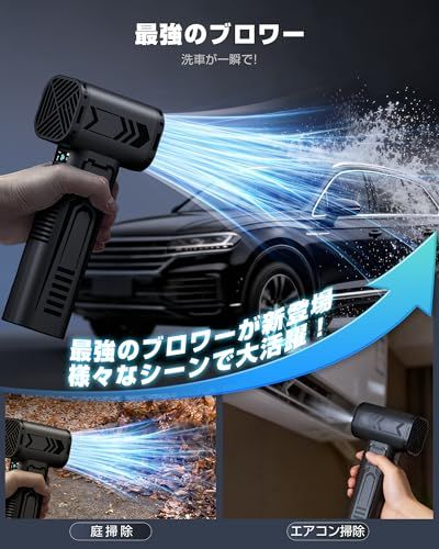 【300000回転/分超強力暴風・新世代ブロワー】超高性能ブラシレスモーター搭載で、圧倒的な風力を実現!強力洗車ブロワーは最大風圧 2400g、風速 200m/s を発揮し、車体表面の水垢を瞬時に乾燥させる驚異的パワーを持っています。手拭きの手間を完全に省き、洗車作業効率を大幅アップ!車の小さな隅々や家具の頑固なホコリも、パワフルな風で一掃 OK。庭の除雪や落ち葉掃除も楽々対応可能で、用途は多岐にわたります。新世代超強力電動エアダスターが、お掃除の悩みを瞬時に解決し、日常生活の便利さを極限まで向上させます!