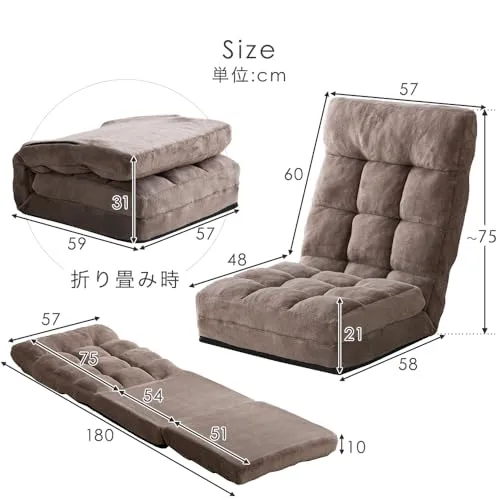 【サイズ】約幅55奥行59高さ75cm (フラット時:約幅55奥行180厚さ10cm) (折り畳み時:約幅55奥行59高さ31cm)