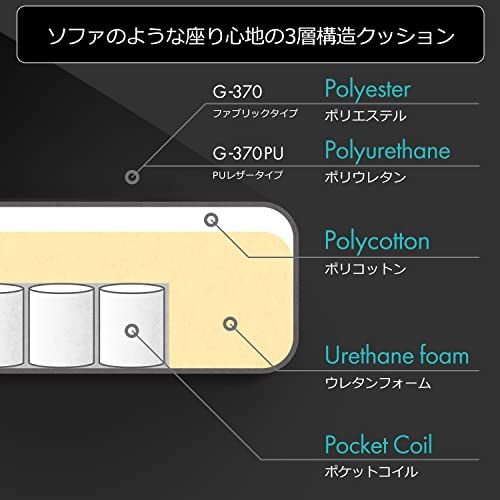 【機能】座面:ポケットコイル、ウレタンフォーム、ポリコットンの3層構造クッション。背部:ウレタンフォーム、ポリコットンの2層構造で体を支えます。アームレスト:上下前後のポジション調節可能。リクライニング:深く倒せる135フルリクライニング設計。大型ランバーサポートクッション付属。
