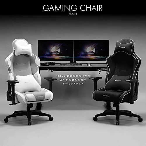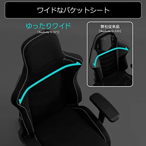 Bauhutte (バウヒュッテ) ゲーミングチェア G-571-BK 180cm超の高身長に対応 ファブリック 高さ調節 蒸れない ポケットコイル内蔵でふかふかの座り心地 ハイバック 4Dアームレスト搭載 ヘッドレスト ランバーサポート リクライニング ロ/