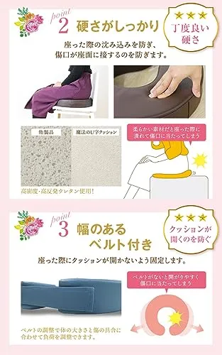 LOOKIT 円座クッション 産後 痔 クッション U字 病院同仕様 お尻が痛くならない 座布団 PVCレザーでお掃除簡単 14色展開 ピンク MUC-7-PK/