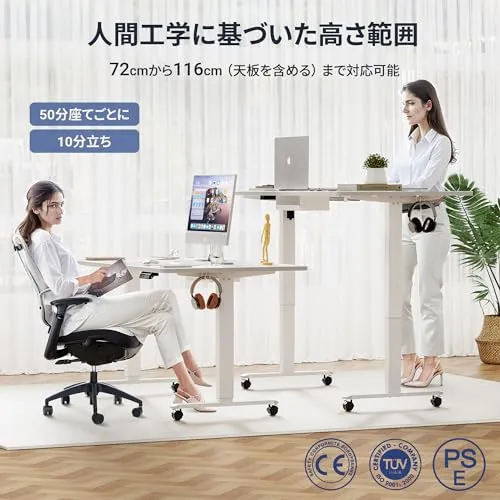 【3つのメモリ機能で作業スタイルに最適化】デスクの高さを72cm(子供用)から116cm(立ち作業用)までシームレスに調整可能。3つのプリセット高さを記憶できるインテリジェントメモリ機能を搭載しており、家族全員の身長や、座業・立業などの異なる作業スタイルにワンタッチで瞬時に対応。テレワークや長時間のPC作業による身体の負担を軽減します。