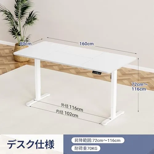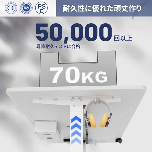【強化モーター搭載で耐荷重70kg】最新型ハイパワーモーターと補強フレームにより、従来モデル比20%向上した70kgの耐荷重を実現。27インチディスプレイを設置しても、スムーズで静かな昇降動作を保証します。オフィスや自宅の重い作業機器にも安心してお使いいただけます。静音設計(動作音50dB以下)で夜間作業も気兼ねなく、スリムなデザインはどんなインテリアにもマッチ。