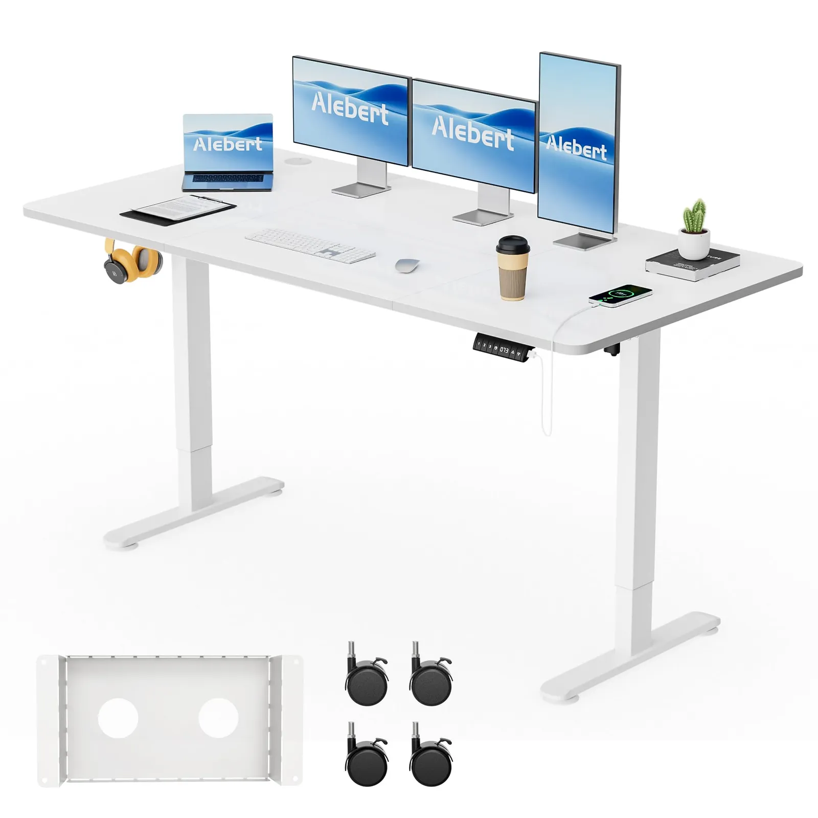 Alebert「アレベルト」 電動式 昇降デスク 昇降式デスク 幅160*奥行80cm スタンディングデスク 入り替え用キャスター付き 収納ボックス付き USB充電可能 高さメモリー機能 障害検知 静音 ゲーミングデスク パソコンデスク 昇降式テーブル オフ/
