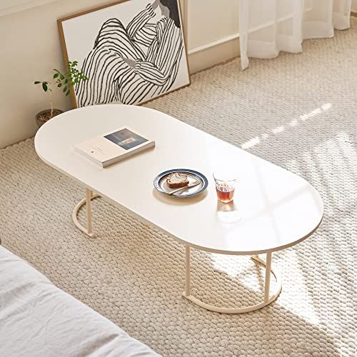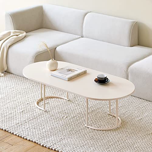 【Roomnhome】ポンドリビングテーブル E1等級MDF天板 1200x560x340mm 9.5kg(ラウンド,ベージュ)/