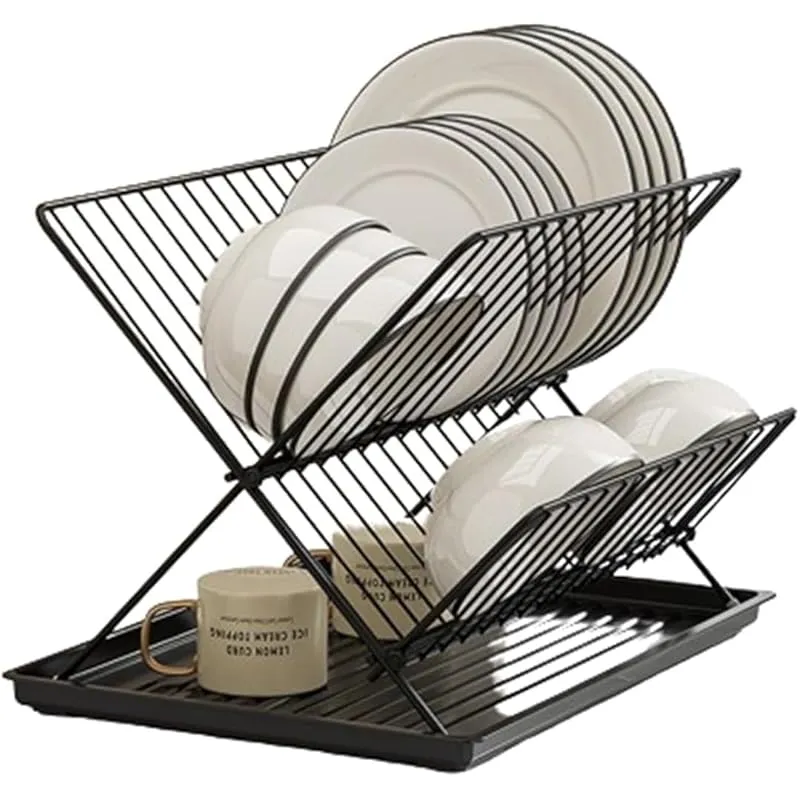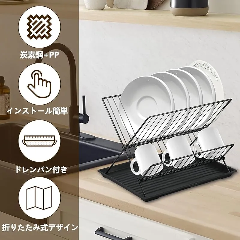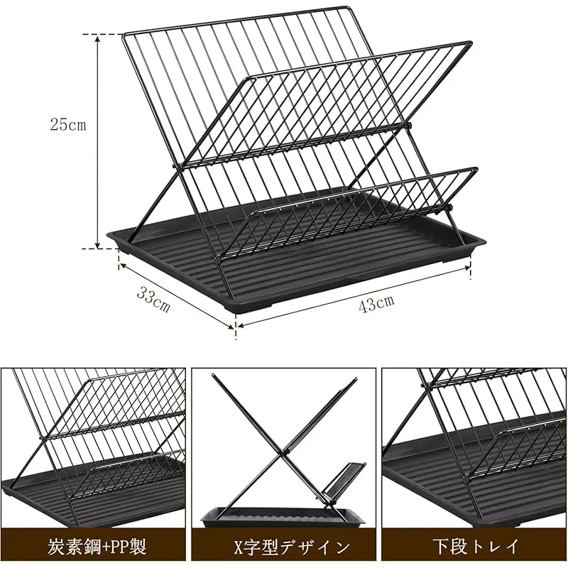 【折りたたみ式食器置き】-- X字型なので、この食器乾燥ラックは簡単に折りたたんで保管でき、スペースを節約できます。炭素鋼製食器ラックは2つの部分に分割でき、折りたたんで1層で使用することも、2段に広げて使用することもできます。