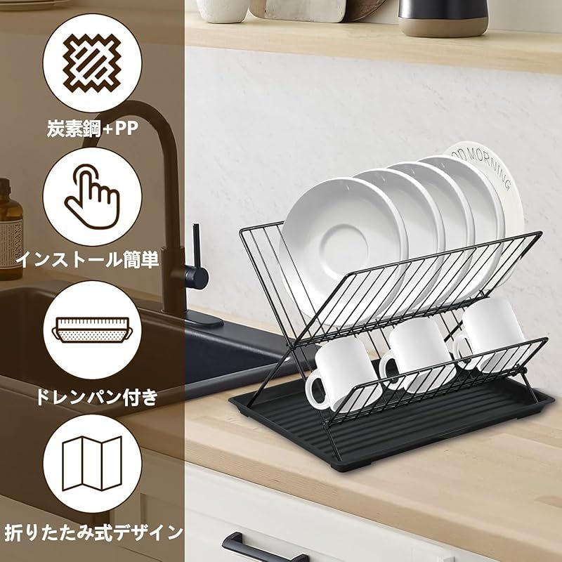 【防錆素材】-- 弊店のキッチン食器乾燥ラックは高級素材で作られており、製品を強くし、防錆素材と優れた表面処理プロセスを採用しているため、耐久性があって長期間使用しても錆びたり変形したりしません。