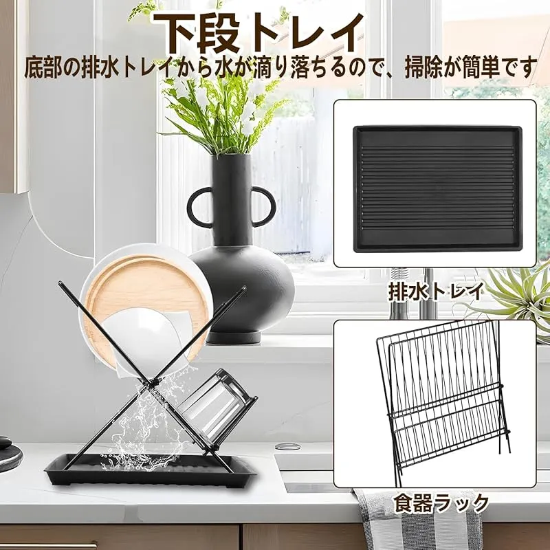 【新品】 水切りラック シンク上 Whonor X型水切りカゴ ラック カップホルダー付き 台所 包丁スタンド 箸立て 自動排水 キッチン 2段 食器用水切りボード 干すやつ 錆びない 大容量 キッチン 収納 自然乾燥可能 水切りラック 折りたたみ式 食器乾燥 製造元:Whonor 商品内容:長さ40cm×幅35cm×高さ3cm 色:黒い