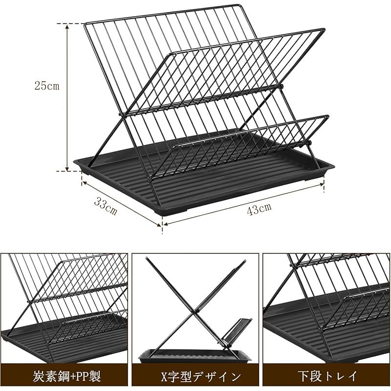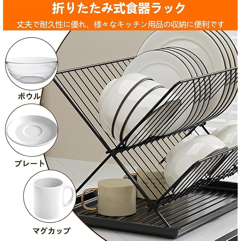 【商品説明】 水切りラック シンク上 Whonor 食器棚 皿立て X型水切りカゴ 台所 キッチン用品乾燥ラック 2段 食器用水切りボード 干すやつ 錆びない 大容量 キッチン 収納 自然乾燥可能 水切りラック 折りたたみ式 組み立て簡単(黒い)