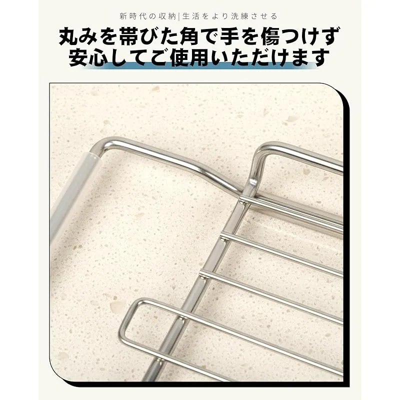 【高品質ステンレス製】高品質ステンレスを使用し、サビに強く耐荷重は10kgで鍋やフライパンも安定して置ける頑丈設計。食器水切りラックとしても長く使える耐久性を備え、水切りカゴのように変形しにくいのが魅力