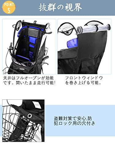 【盗難防止&反射素材】カバーにワイヤーロックを通す穴が付いて、盗難からレインカバーを守ることができます。また、夜間走行時の視認性を高める反射材が採用されました。夜間走行や薄暗い雨の日でも安心・安全です。