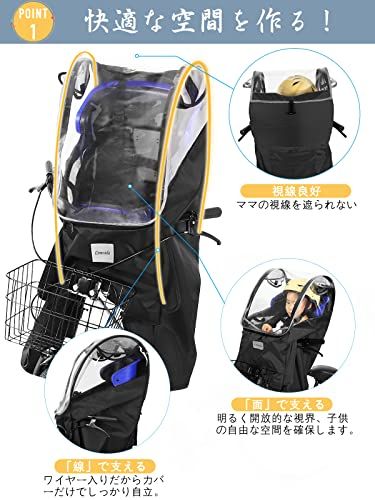 自転車 チャイルドシー トレインカバー 前 後付け 600Dナイロン 厚手で耐久性アップ 広々空間 乗り降り簡単 防寒 雨よけ Convida (ブラック)【送料無料】【☆Yuki☆Shop】