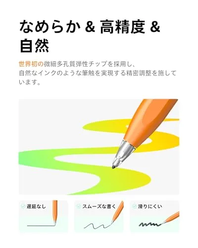 【新登場・Air-Flexペン先 ― 静音で紙のような書き心地】 Metapenは、世界初のマイクロエアチャンバーを備えたAir-Flexソフトペン先を採用。iPad画面上で優しい抵抗感を生み出し、まるで紙に書くような自然な筆記感を実現しました。従来のハードペン先よりも柔らかく、スムーズに滑って画面を傷つけません。動作音はわずか35dBで、静かな環境でも周囲を気にせず使用可能。各Air 8 Pro Xには長く使えるAir-Flexペン先が3本付属しています。