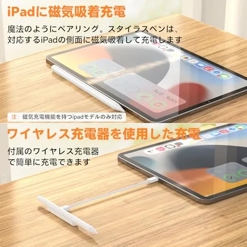【重要!!購入前にお読みください】注:磁気充電機能に対応しているiPadモデル:iPad Pro 12.9インチ (第3/4/5/6世代)、iPad Pro 11インチ (第1/2/3/4世代)、iPad Air (第4/5世代)、iPad mini第6世代。 上記以外のiPadは磁気吸着充電には対応していませんが、付属の充電器を使用して充電できます。