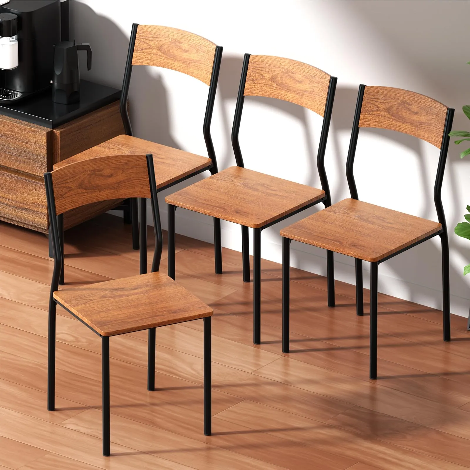 ダイニングチェア 4脚セットProbasto 食卓椅子 木目調 椅子 シンプル 木製 スチール 北欧 一人暮らし 頑丈 (ブラウン )/