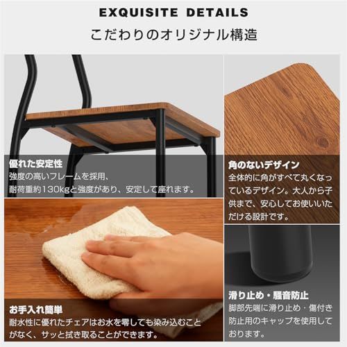 【安定性あり、お手入れ簡単】金属フレームは しっかりとした作りで丈夫です。座面の角を丸くした安全に配慮した設計で、お子様のいるご家庭でも安心してご使用いただけます。汚れてもサッと拭き取れて、食事中に食べ物や飲み物をこぼしてしまっても安心です。