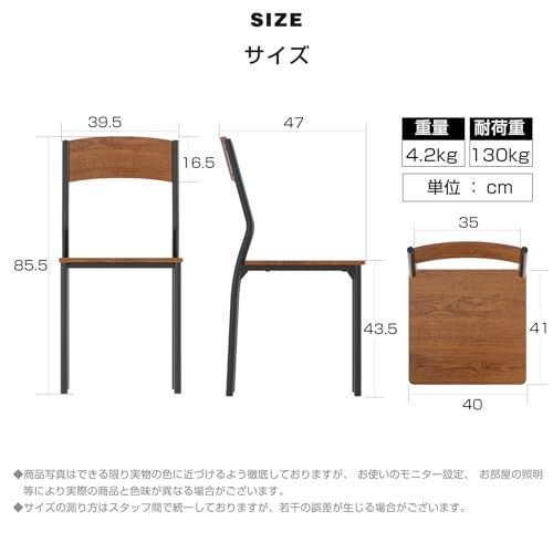 【商品仕様】「カラー:ブラウン」、「パッケージ内容」4脚セット、「材質」合成樹脂化粧繊維板、スチール「重量」4.2kg「サイズ( 約)」幅40cm奥行47cm高さ85.5cm、床から座面までの高さ:43.5cm 「耐荷重」約130kg。備考:要組立品 ※実寸サイズを測っているため多少誤差がでる場合があります。 ※変色・変形を防ぐため、設置場所は高温・多湿となる場所を避けてください。※カメラ光線の加減で実物と色が多少異なる場合がございます。予めご了承ください。