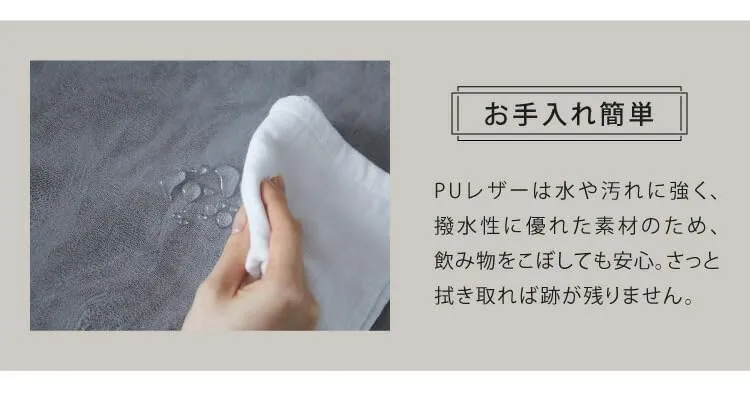【お手入れ簡単】 PUレザーは水や汚れに強く、撥水性に優れた素材のため、飲み物をこぼしても安心。さっと拭き取れば跡が残りません。