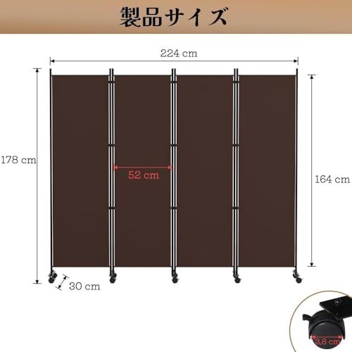 KELIXU パーテーション 間仕切り 4連 自立式 カバーストリップ付き 衝立 キャスター付き 高さ1.78m×幅2.24m 布タイプ 折りたたみ 仕切りパネル 軽量 クロスパーテーション 目隠し 屏風 おしゃれ 組み立て簡単 部屋 オフィス 会議室 (ブ/