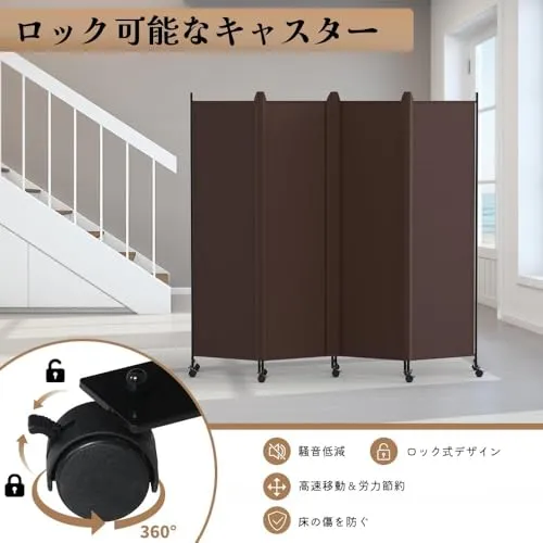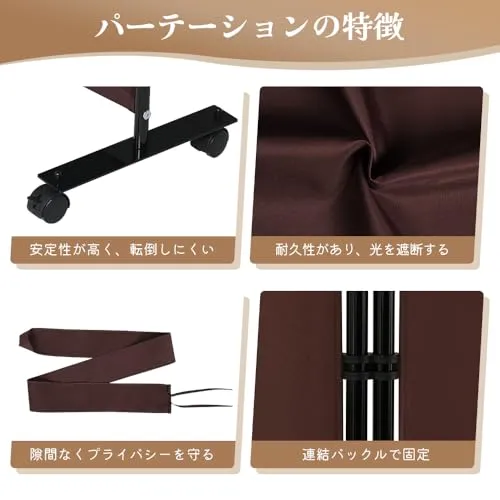 キャスター付き&頑丈な構造:10個のキャスターが付き、そのうち5個はロック可能。ついたてを部屋のどこにでも自由に移動させ、簡単に固定することができます。移動はスムーズで静かで、床へのダメージを最小限に抑えます。一方、塗装済みで防錆加工が施された金属製鋼管から作られた仕切りパネルは、変形しにくく耐久性に優れています。各衝立は、強化バックル接続によって固定されています