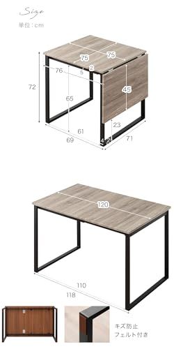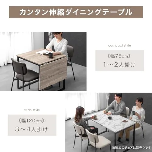 タンスのゲン ダイニングテーブル 単品 伸長式 2人掛け 幅75cm 幅120cm 木目調 折りたたみ 食卓テーブル 北欧 コンパクト 72600057(90790)/