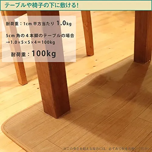 【テーブルやいすの下に敷ける】テーブルやいすの下に敷いて使うことができます。1平方センチメートルあたり1.0kgまで耐えることができます。この重さを超える場合には、あて板をお使いください。