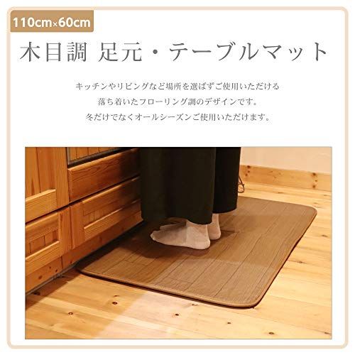ライフジョイ ホットマット 防水 110cm×60cm キッチン対応 フローリング調 電気マット 木目調 ブラウン FM111/