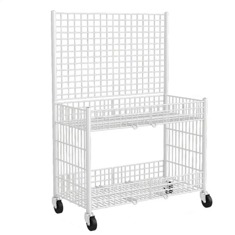 『大特価』 通りに屋台を出す スーパーマーケットの棚 整理棚 フック付き 多機能 クラフト 食品 果物 ショー/小売アート 野菜 フェア/フリー 陳列棚 メッシュパネル マーケット サイズ65x55x130CM-ホワイト) バスケットラック キャスター付き(