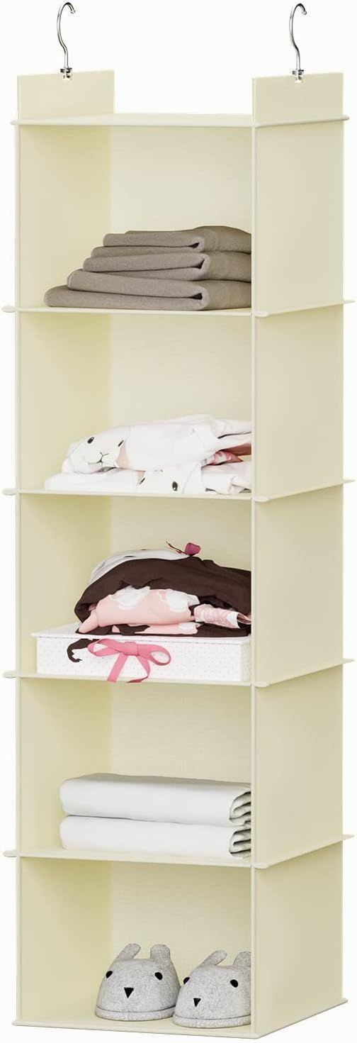 YOUDENOVA クローゼット 吊り下げ収納 5段 折りたたみ 収納ラック 吊り下げ 収納 吊り下げ 衣類収納 帽子収納 省スペース バッグ 収納ラック 吊り下げ(ベージュ・5段)
